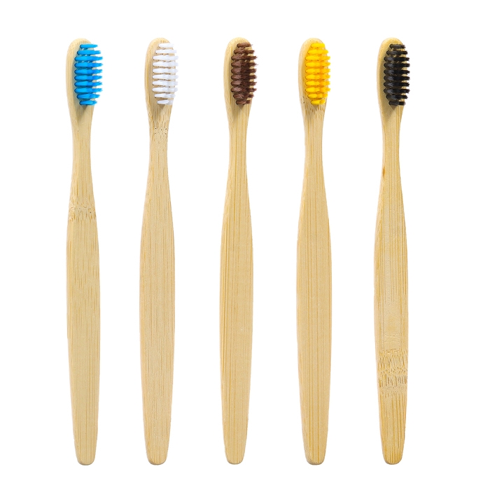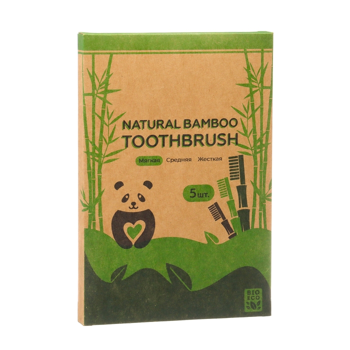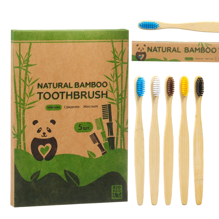 Зубная щетка бамбуковая мягкая, 5 штук, микс цветов