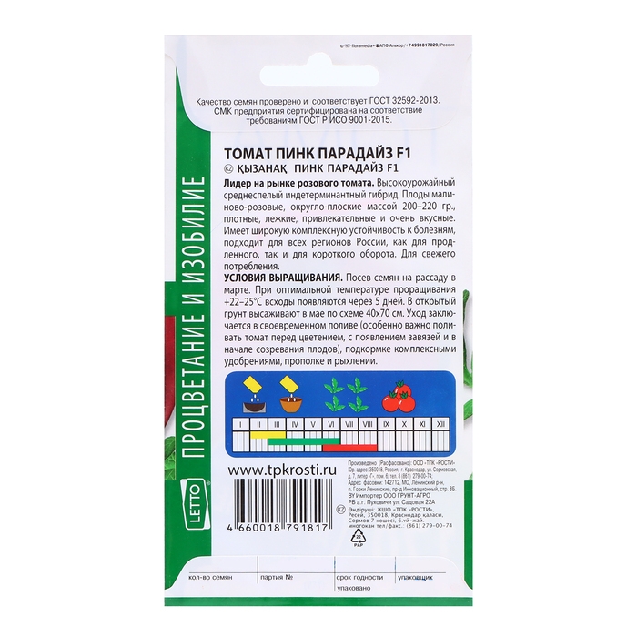 Лидер на рынке розового томата. Высокоурожайный среднеспелый индетерминантный гибрид. Плоды малиново-розовые, округло-плоские массой 200-220 гр, плотные, лежкие, привлекательные и очень вкусные. Имеет широкую комплексную устойчивость к болезням, подходит для всех регионов России, как для продленного, так и для короткого оборота. Для свежего потребления. Семена обработаны тирамом. Перед посадкой не замачивать.