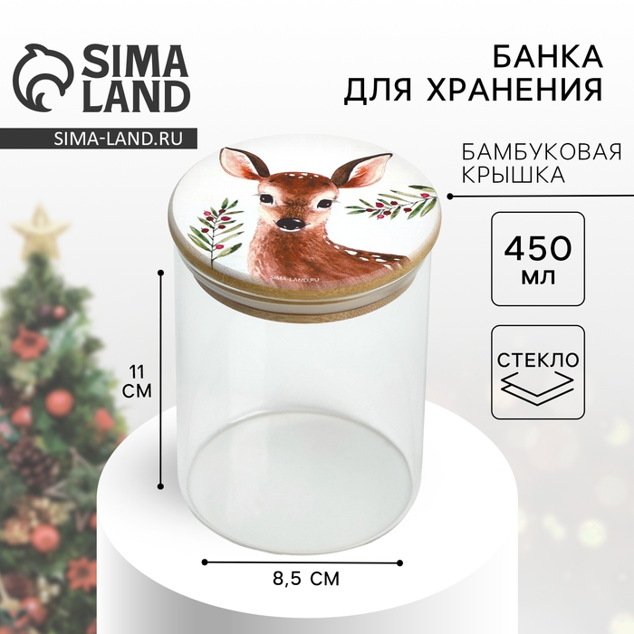 Банка для хранения новогодняя Дорого внимание «Оленёнок», стекло, 450 мл