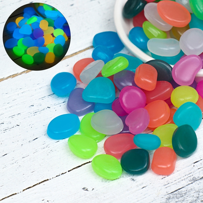 Декоративные камни для аквариума, светящиеся, 20 мм, 200 г, микс