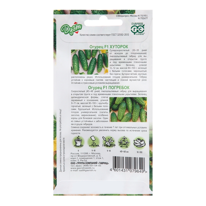 Семена Огурец "Погребок", F1, 10 шт. + "Хуторок", F1, 10 шт.