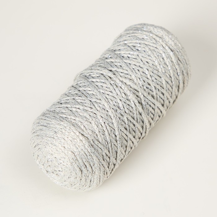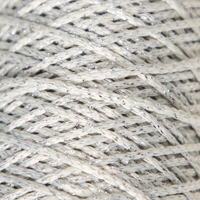 Шнур для вязания 100% полиэфир с люрексом 1 мм цилиндр, 75±10г, 200м, 02-молочный+серебро