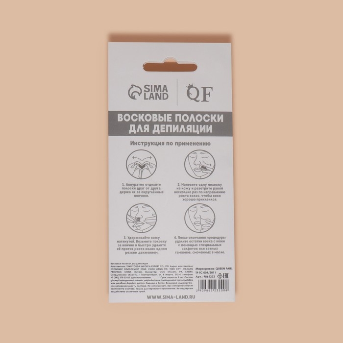 Женская красота - это здоровье, уверенность и ухоженность, а восковые полоски для депиляции чувствительной кожи лица - незаменимое средство для ее достижения. Результат удаления волос на лице с помощью восковых полосок - гладкая, мягкая и здоровая кожа лица, свободная от нежелательных волос и их роста. Восковые полоски предотвращают появление вросших волос.