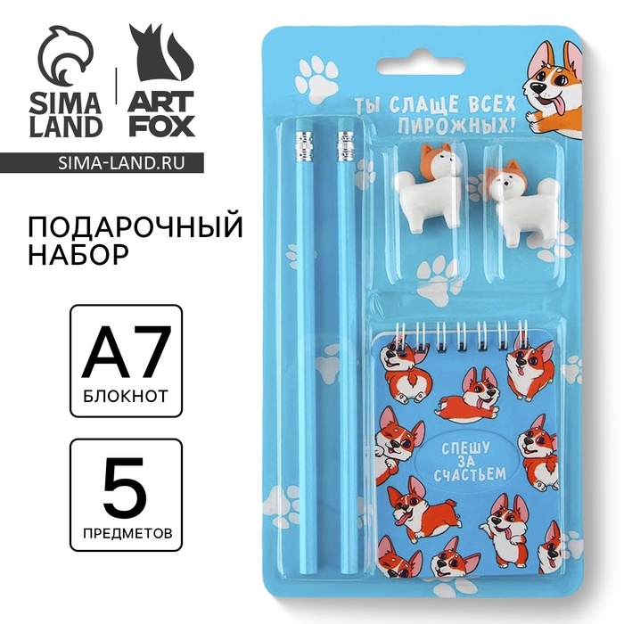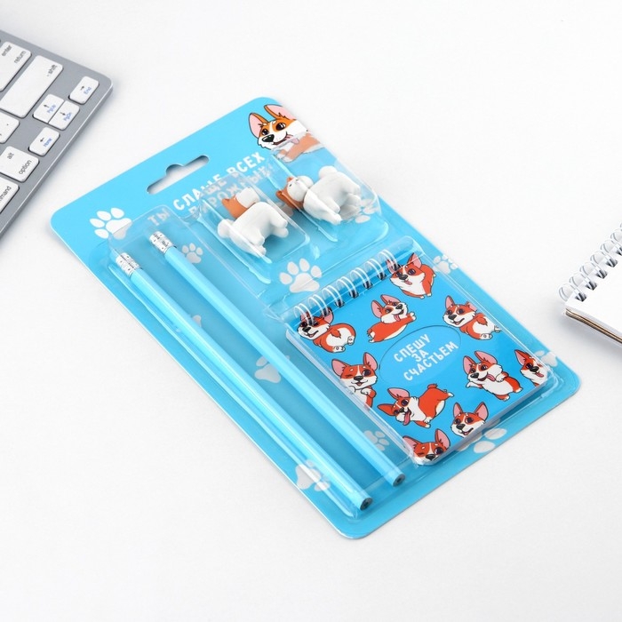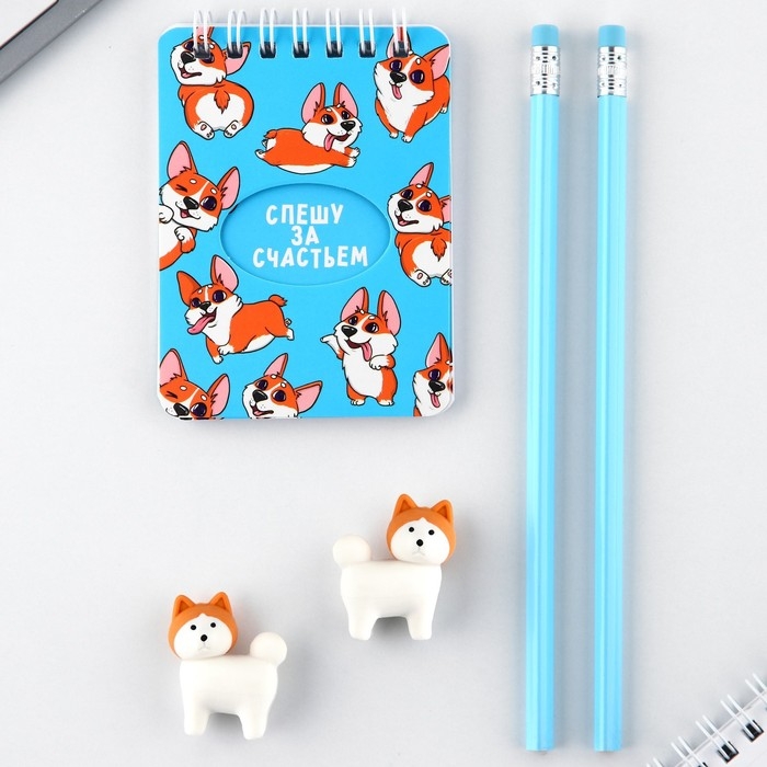 Подарочный набор «Спешу за счастьем», карандаши 2 шт, ластики 2 шт, блокнот