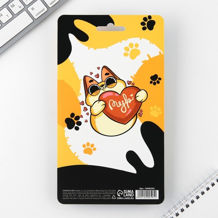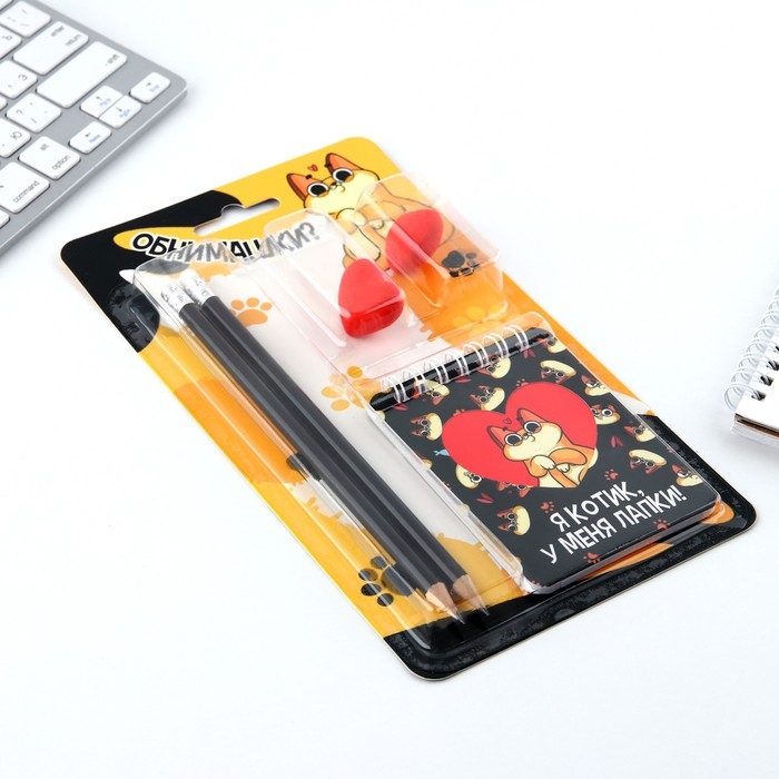 Подарочный набор «Котик», карандаши 2 шт, ластики 2 шт, блокнот