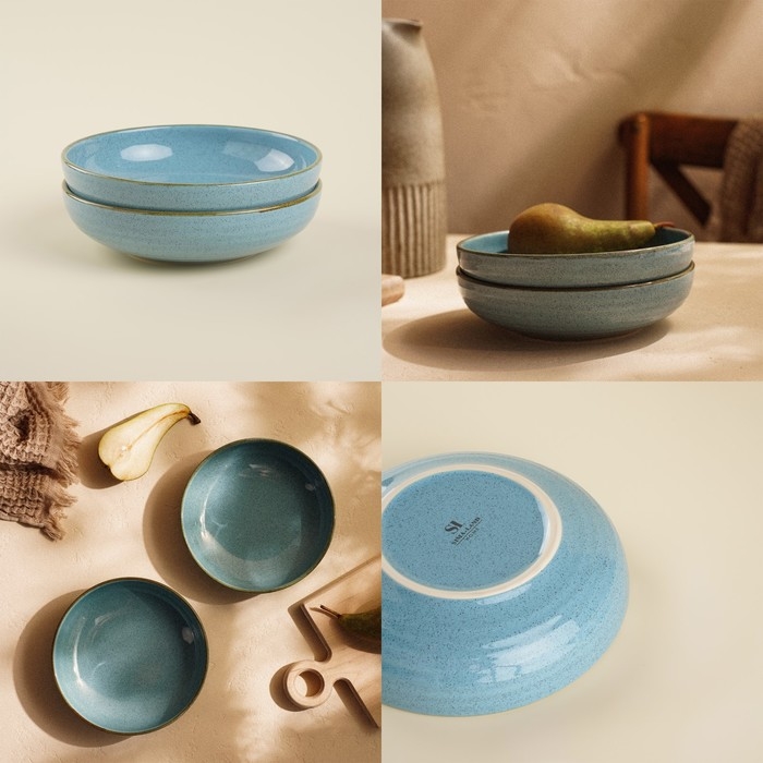 Набор тарелок глубоких фарфоровых SL Home «Аззура», 18,5×5 см, цвет бирюзовый