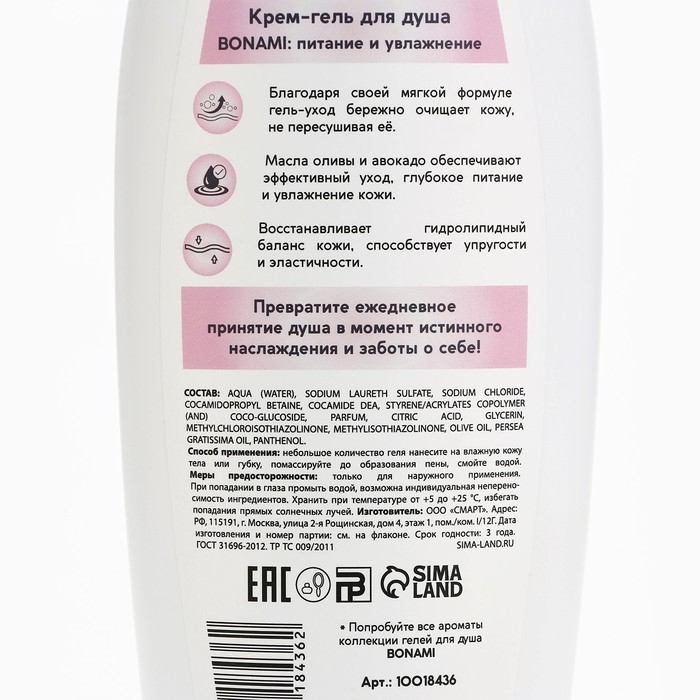 Гель для душа женский с пантенолом, 750 мл, аромат нежности шёлка, BONAMI