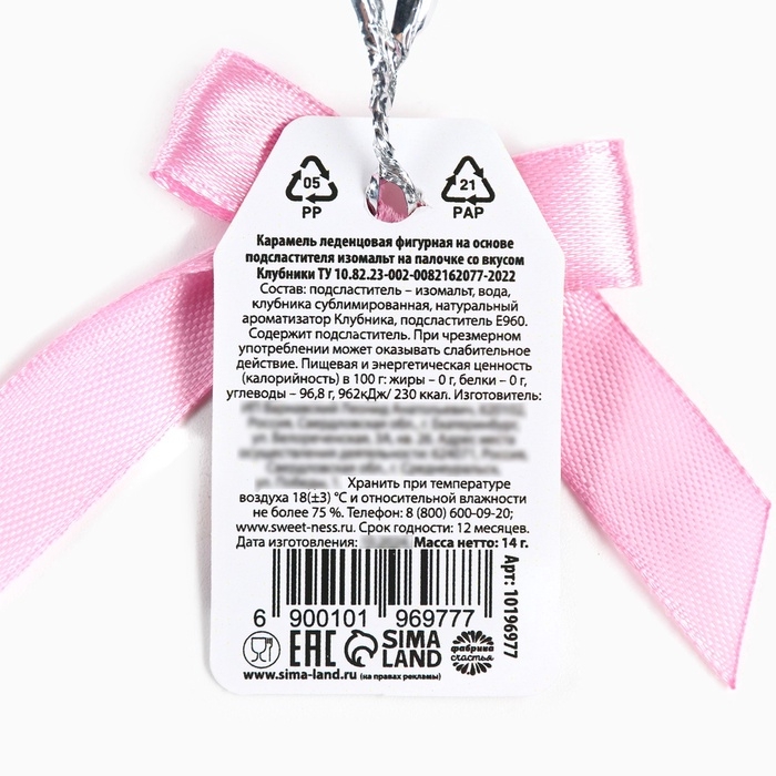 Леденец с цветами «Ты ярче всех», вкус: клубника, БЕЗ САХАРА, 14 г.