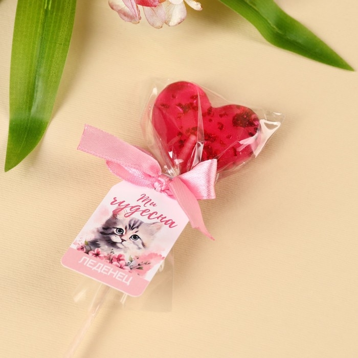 Леденец с цветами «Ты чудесна», вкус: клубника, БЕЗ САХАРА, 12 г.