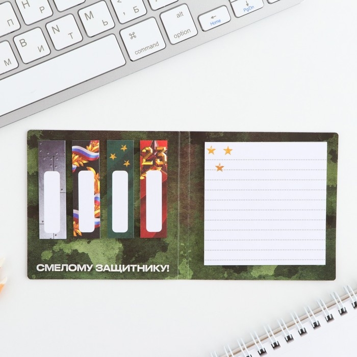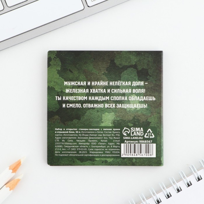 Подарочный набор в открытке «Настоящему герою», стикеры 4х20 л, отрывной блок 30 л