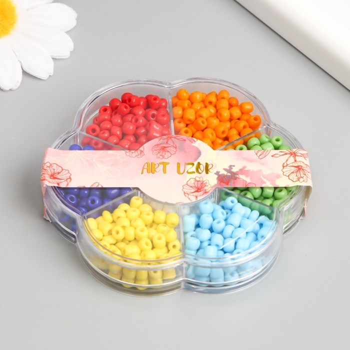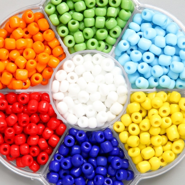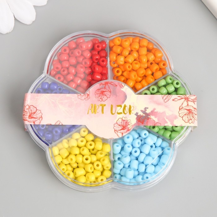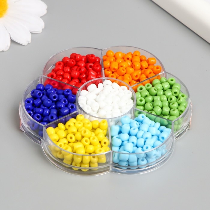 Бисер стекло 6/0 в цветке "Краски" цветной глянец 7 цветов х 8 гр 8,2х8,2х2 см