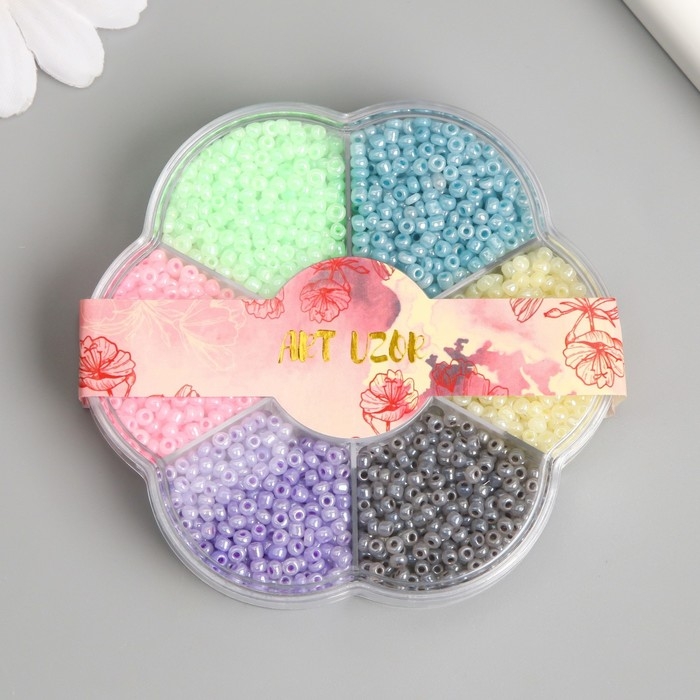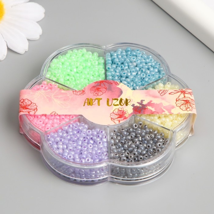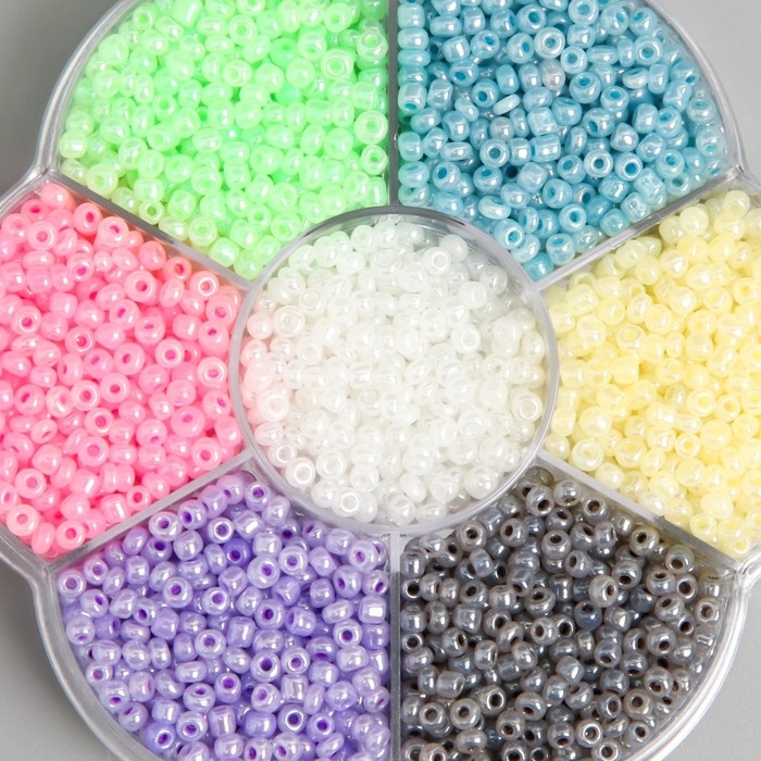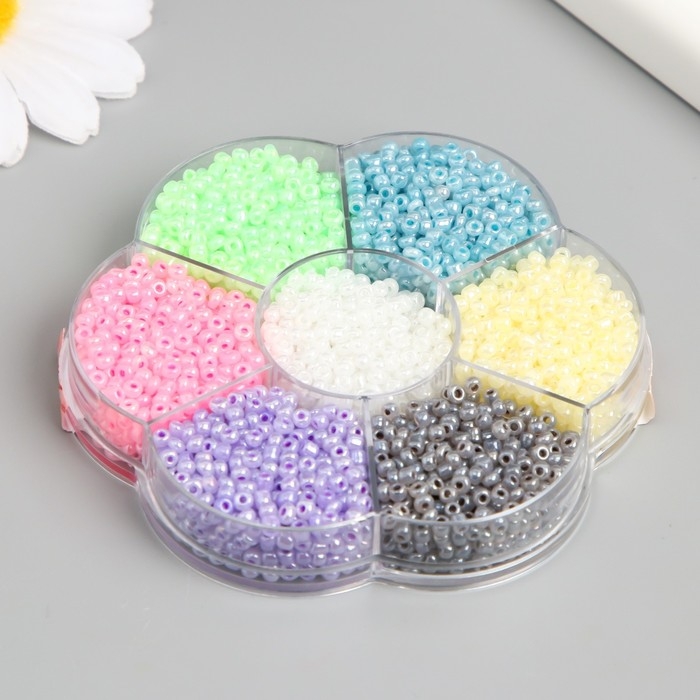 Бисер стекло 12/0 в цветке "Зефирные цвета" цветной перламутр 7 цветов х 8 гр 8,2х8,2х2 см 990499