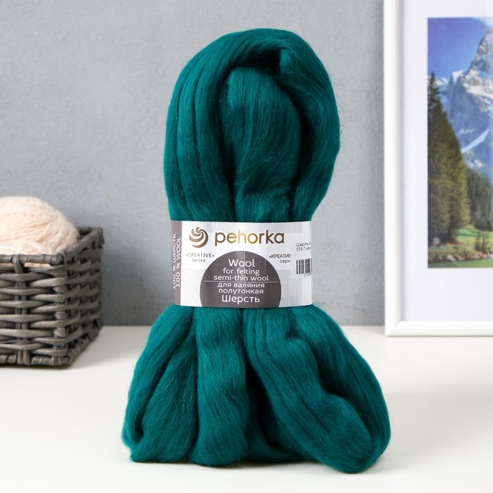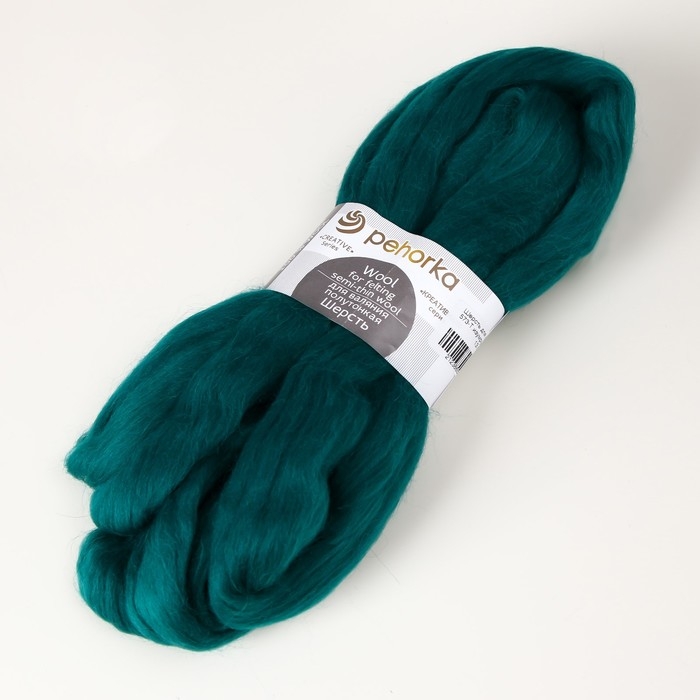 Шерсть для валяния 100% полутонкая шерсть 50гр (573-Т.изумруд)
