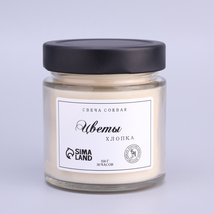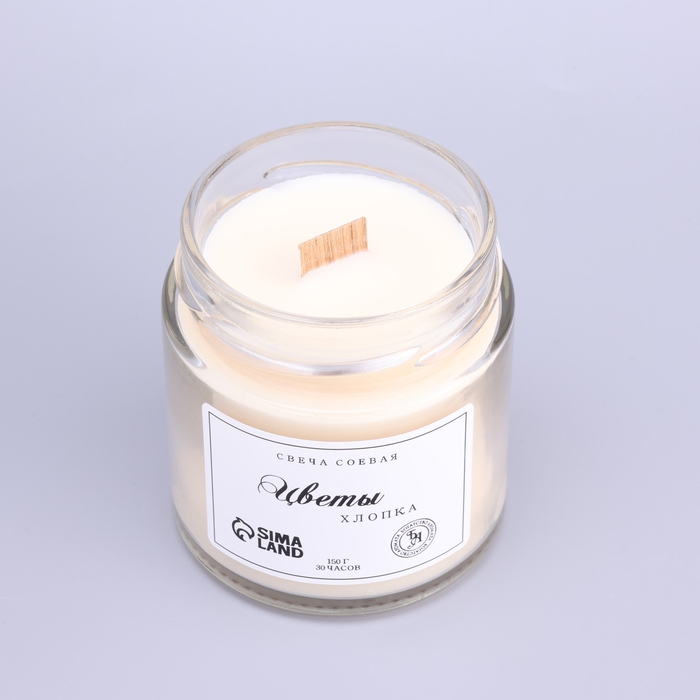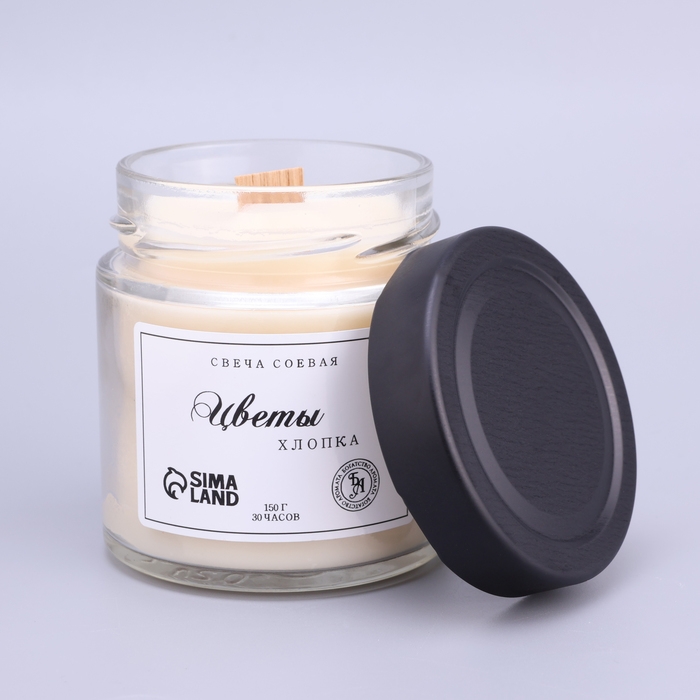 Свеча ароматическая из соевого воска в банке, 150 г, деревянный фитиль, цветы хлопка