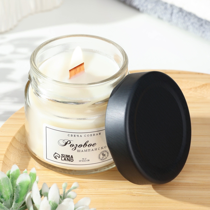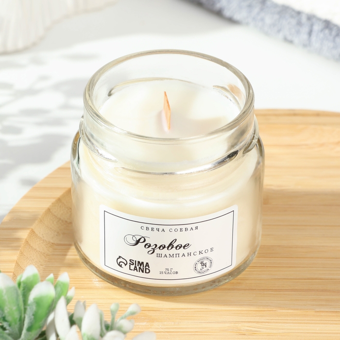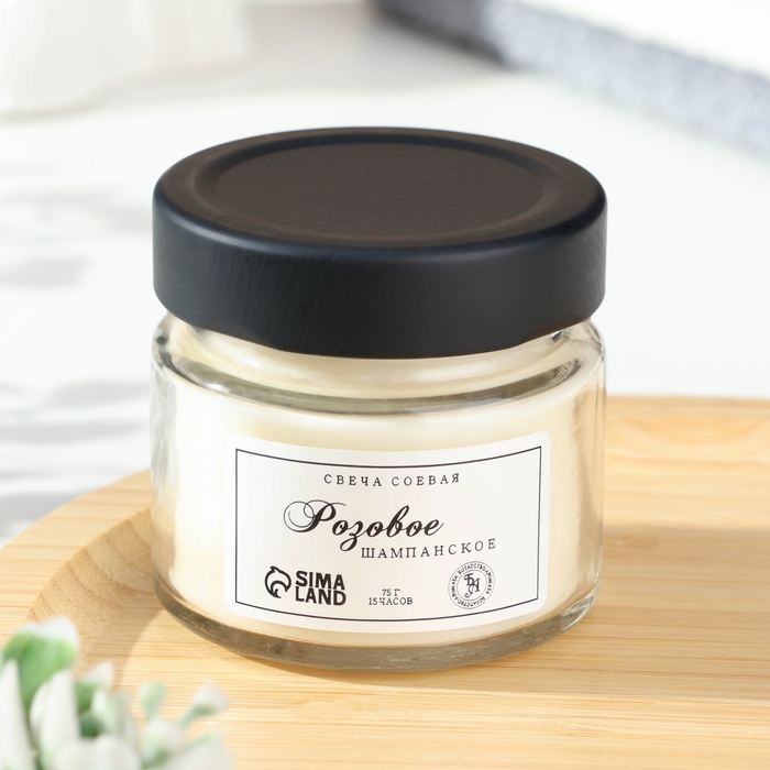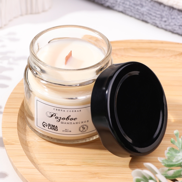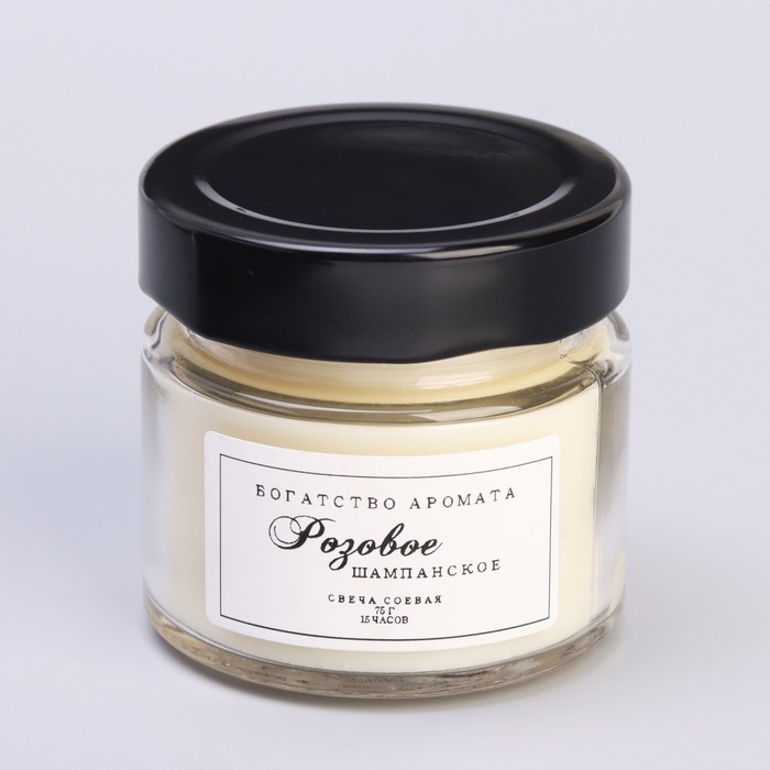 Свеча ароматическая из соевого воска в банке, 75 г, розовое шампанское