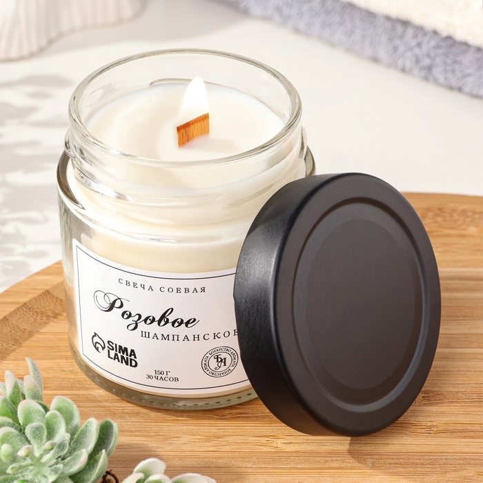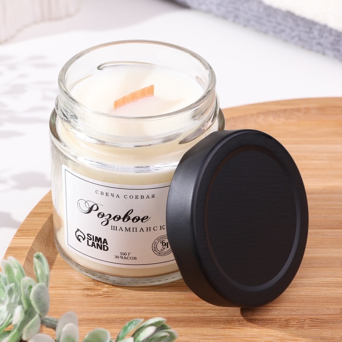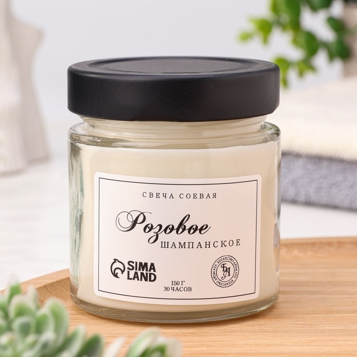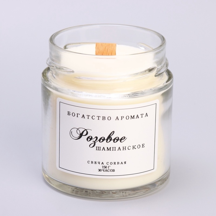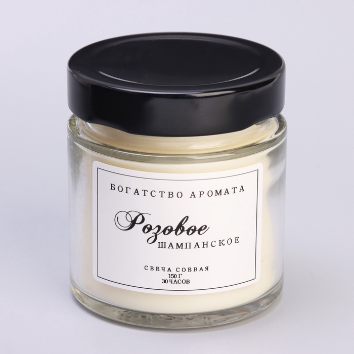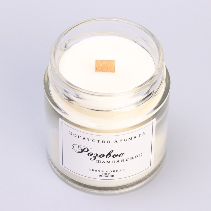 Свеча ароматическая из соевого воска в банке, 150 г, розовое шампанское