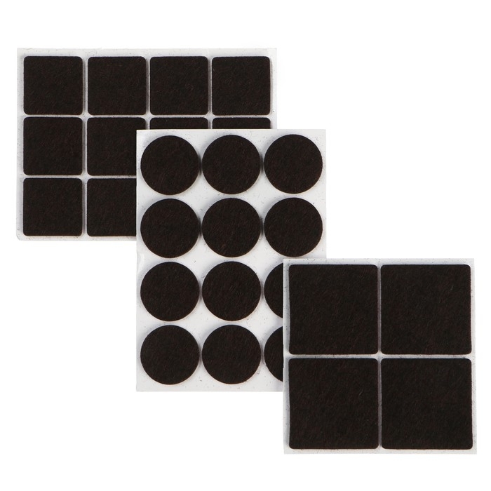 Набор накладок мебельных, войлочных, 28 шт., 2,5х2,5; d=2,5; 3,8х3,8, цвет темно-коричневый 993880