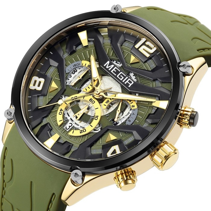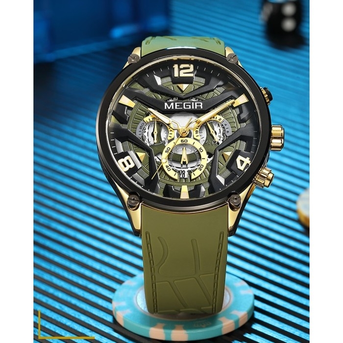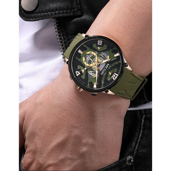 Часы наручные кварцевые мужские, d-4.6 см, с хронографом, 3 АТМ, светящиеся, зеленые