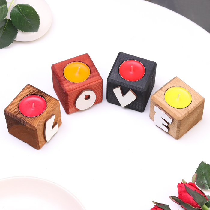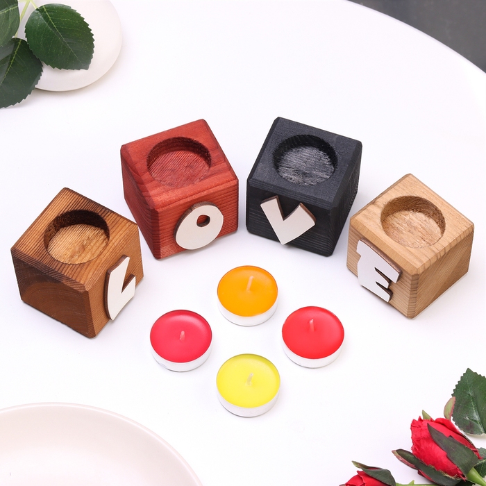 Подсвечник для интерьера 4 шт с надписью LOVE, цвет: "Микс", аромат: ягодно-фруктовый микс