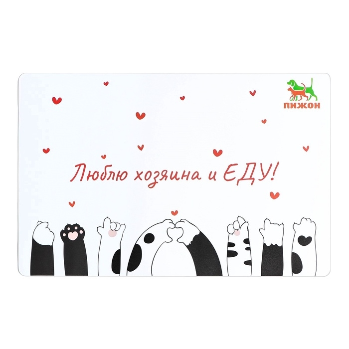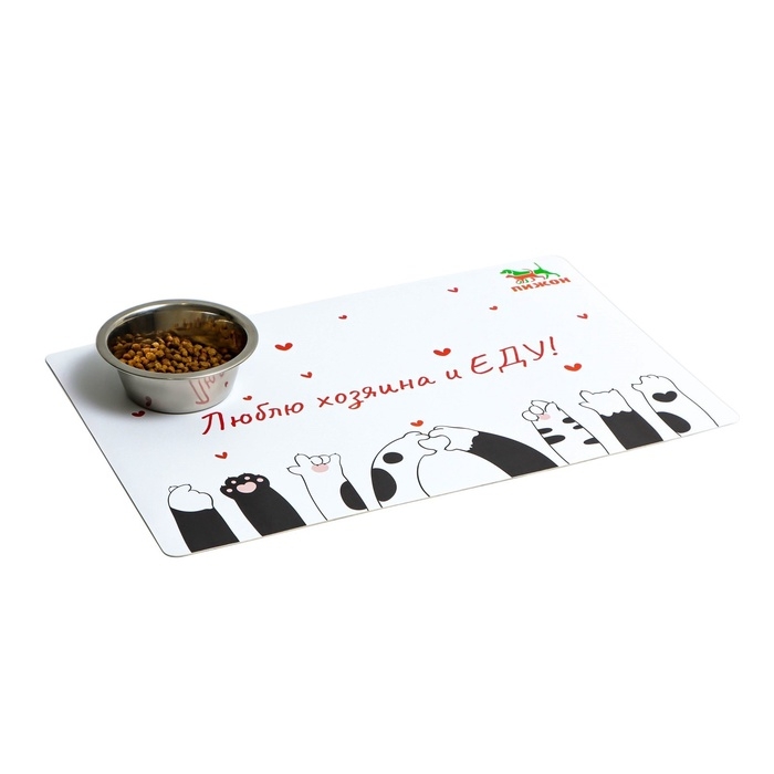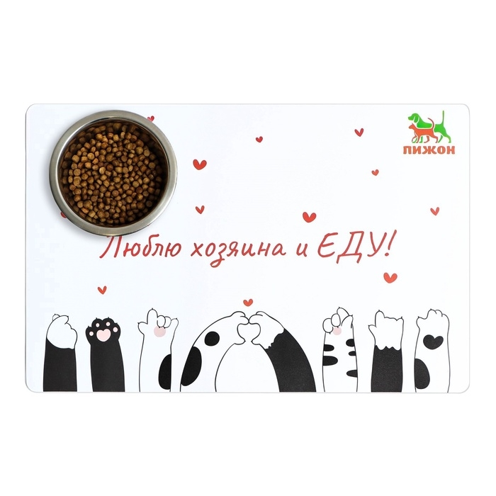 Коврик под миску "Пижон" с нескользящим основанием 43 х 28 см "Люблю хозяина и ЕДУ"