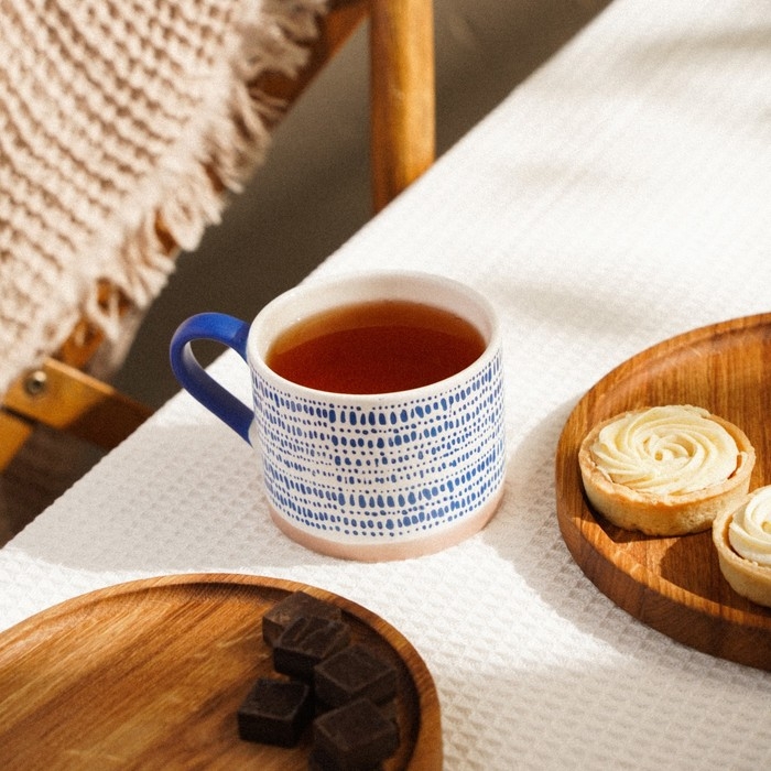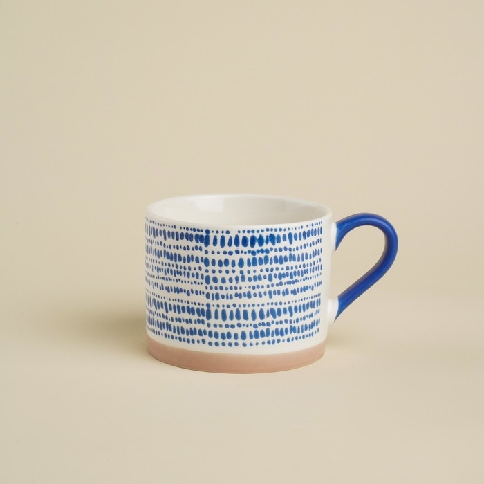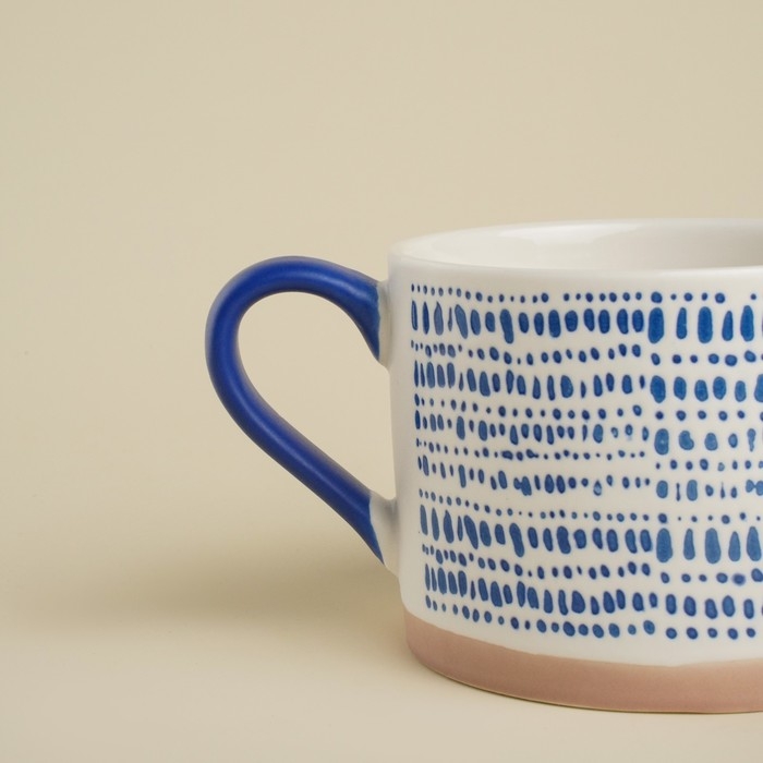 Кружка выполнена из высококачественного нового костяного фарфора, что делает её не только эстетически привлекательной, но и долговечной. Гладкая матовая поверхность придаёт изделию особый шарм, а утончённый узор добавляет изысканности, сохраняя при этом лаконичность скандинавского стиля.