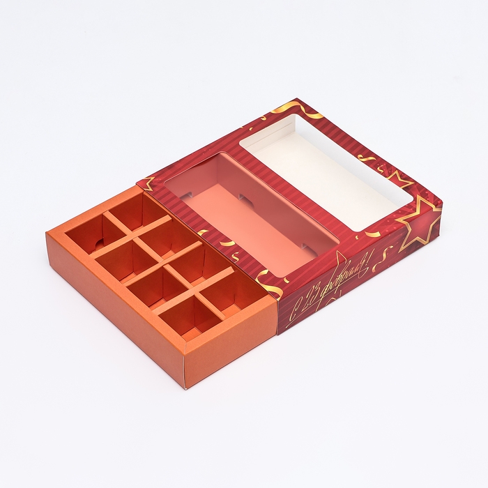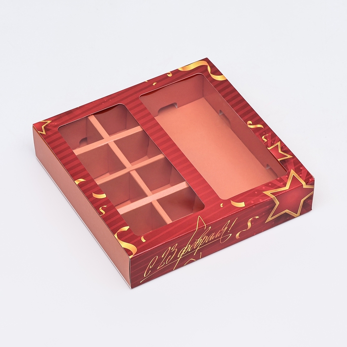 Коробка под 8 конфет + шоколад, с окном, "Армейские звезды", 17,7 х 17,85 х 3,85 см