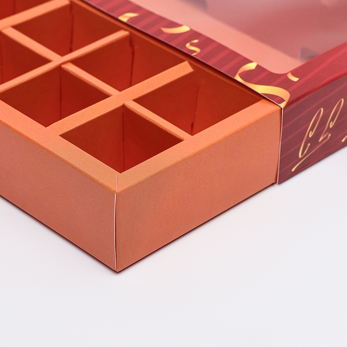 Упаковка для конфет 9 шт,14,5 х 14,5 х 3,5 см, красный