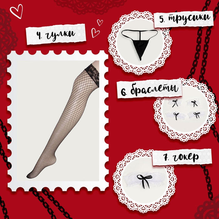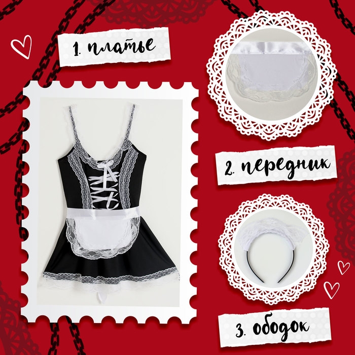 Карнавальный набор «Горничная», р. 36–46: платье, передник, чулки, ободок, чокер, браслеты 4 шт., трусики