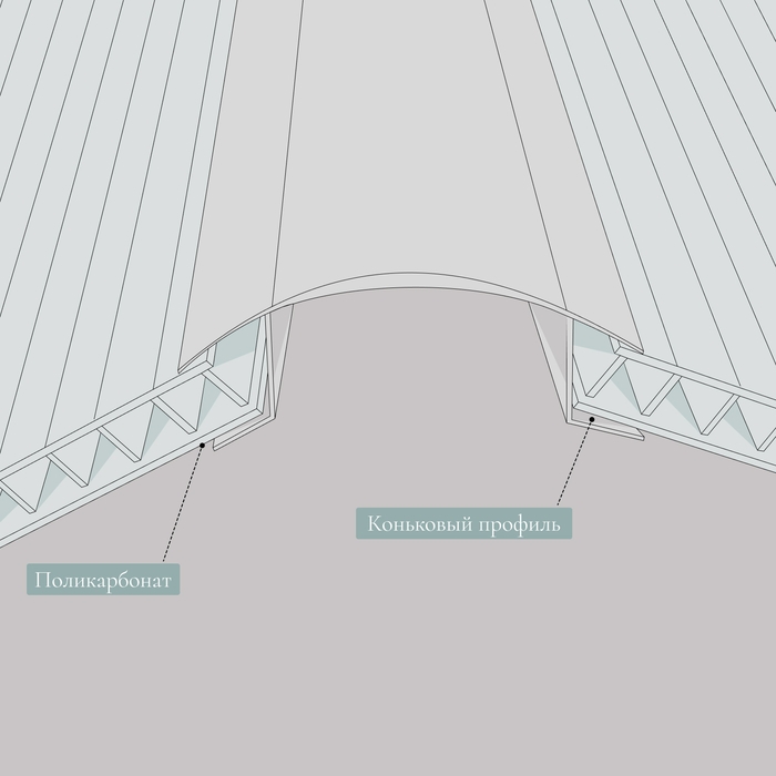 Профиль коньковый для поликарбоната, толщина 4 - 6 мм, длина 6 м, универсальный