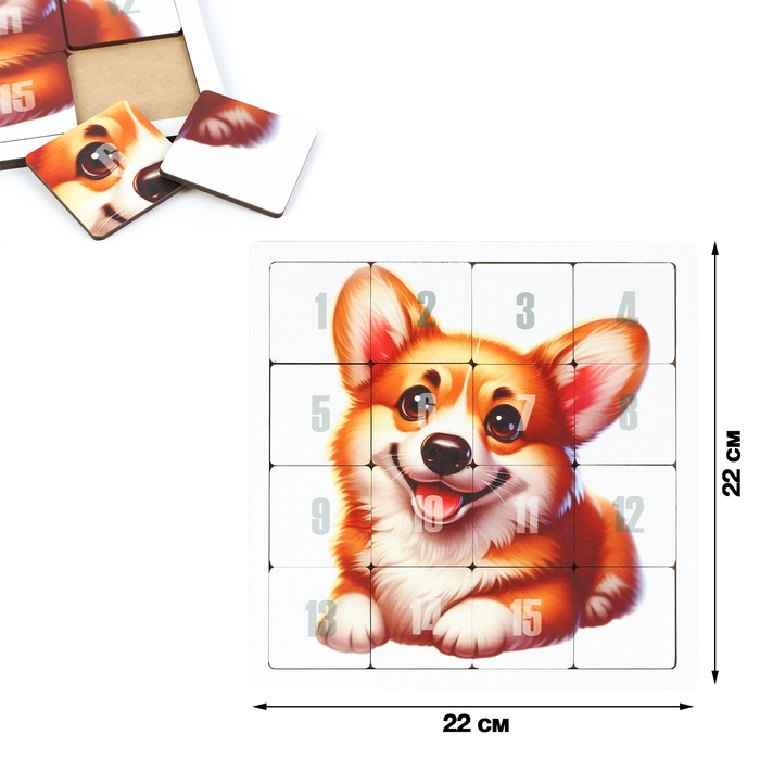 Головоломка "Пятнашки. Корги", логическая настольная игра, 22х22 см