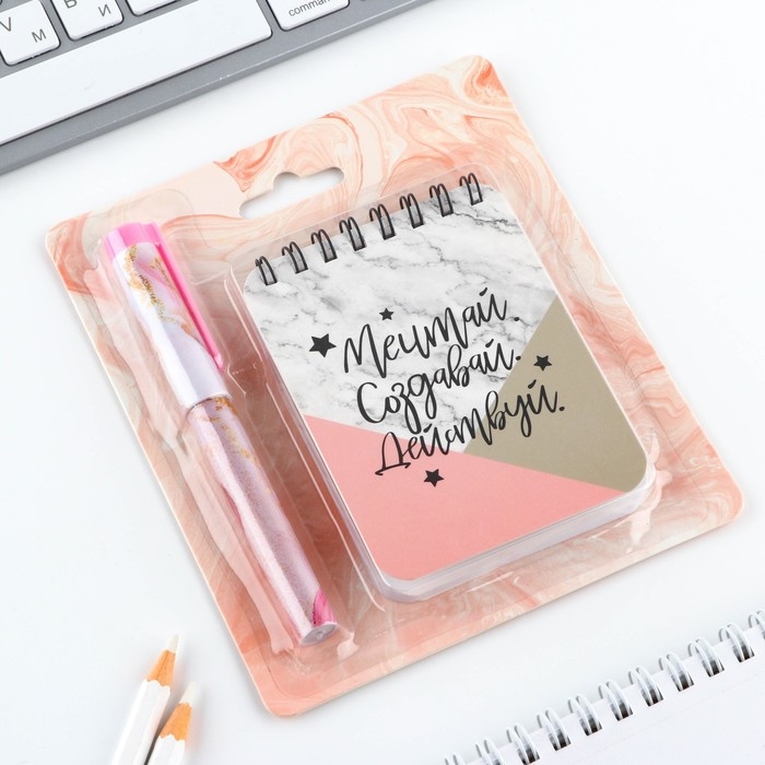 Подарочный набор блокнот и ручка «Мечтай. Создавай. Действуй»