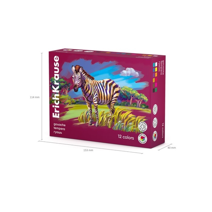 Гуашь 12 цветов х 20 мл, ErichKrause " Safari", с УФ защитой яркости, в картонной упаковке