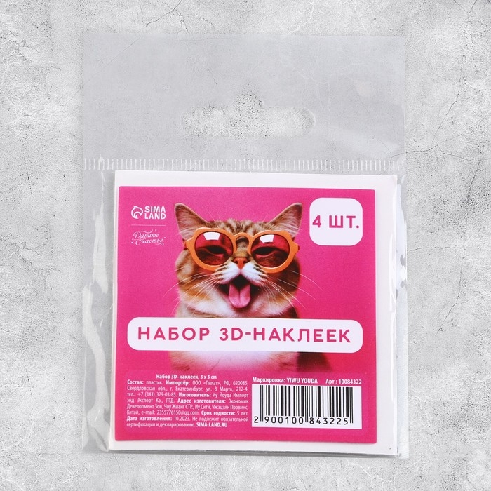 Объёмные 3D стикеры на телефон «Коты», 4 шт, 3 х 3 см