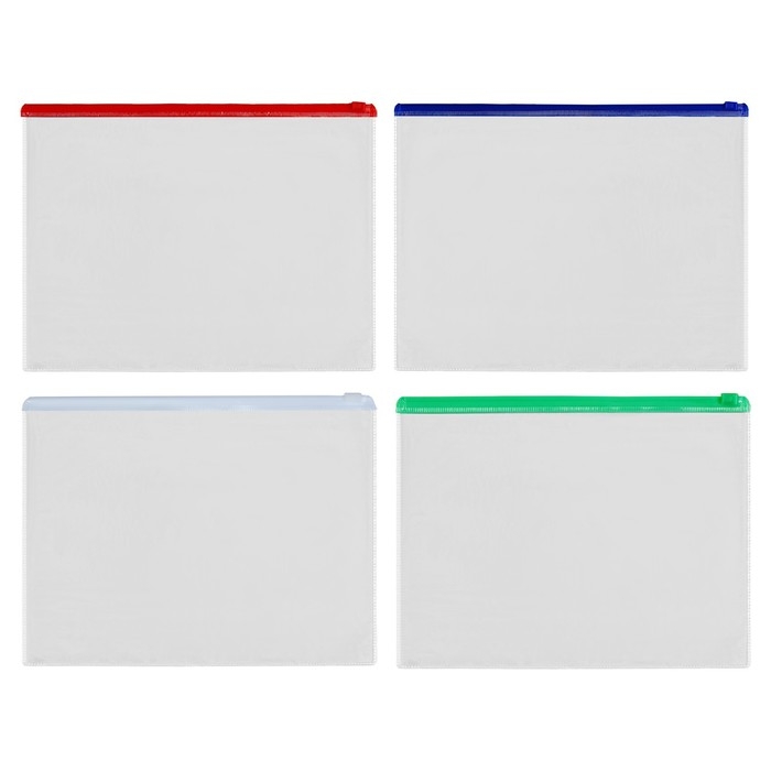 Набор папка-конверт на молнии 20 штук, формат А5 120 мкр прозрачная, молния 24 х 17см