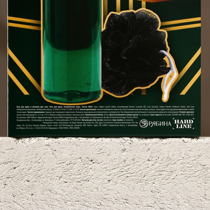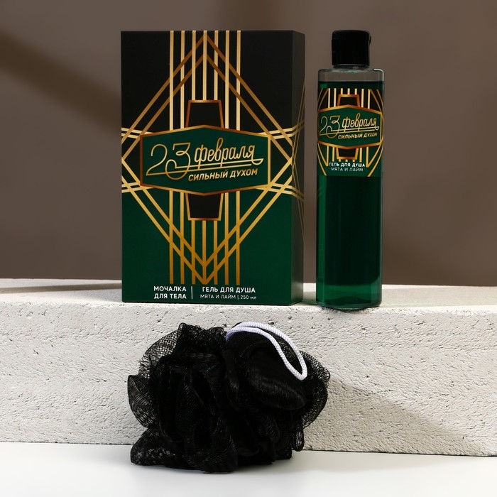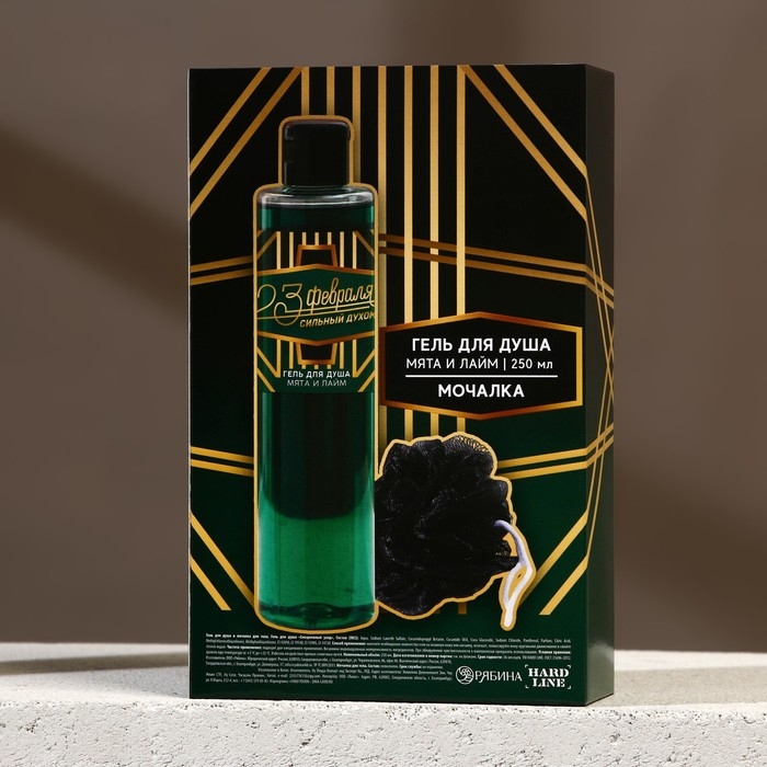 Подарочный набор косметики «Сильный духом», гель для душа 250 мл и мочалка для тела, HARD LINE