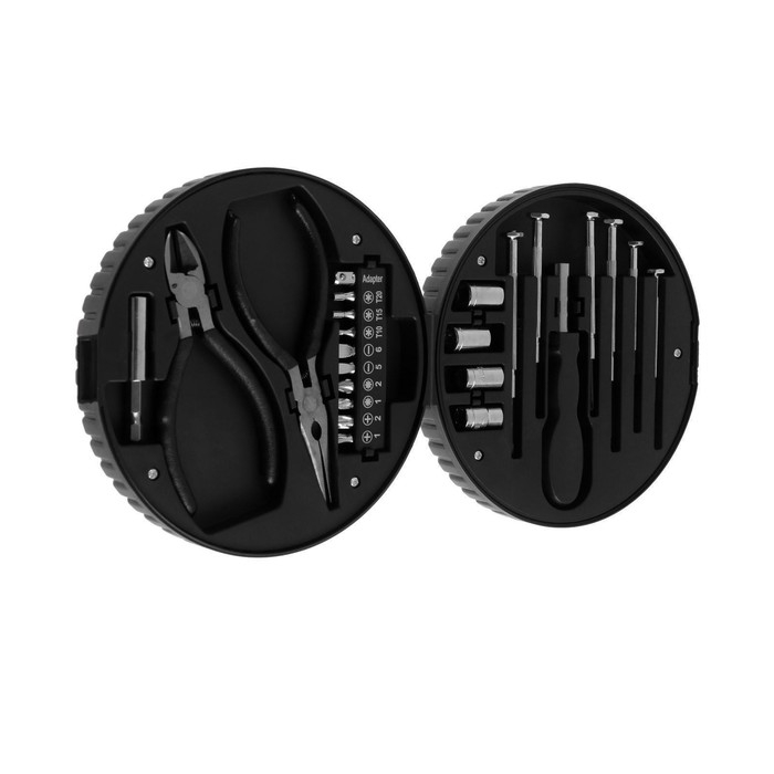 Набор инструментов ТУНДРА, подарочный пластиковый кейс "Колесо", 24 предмета