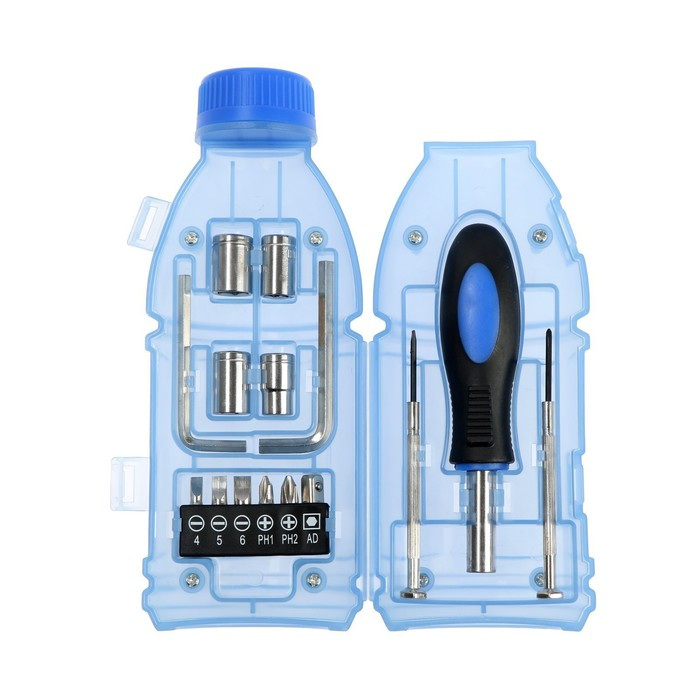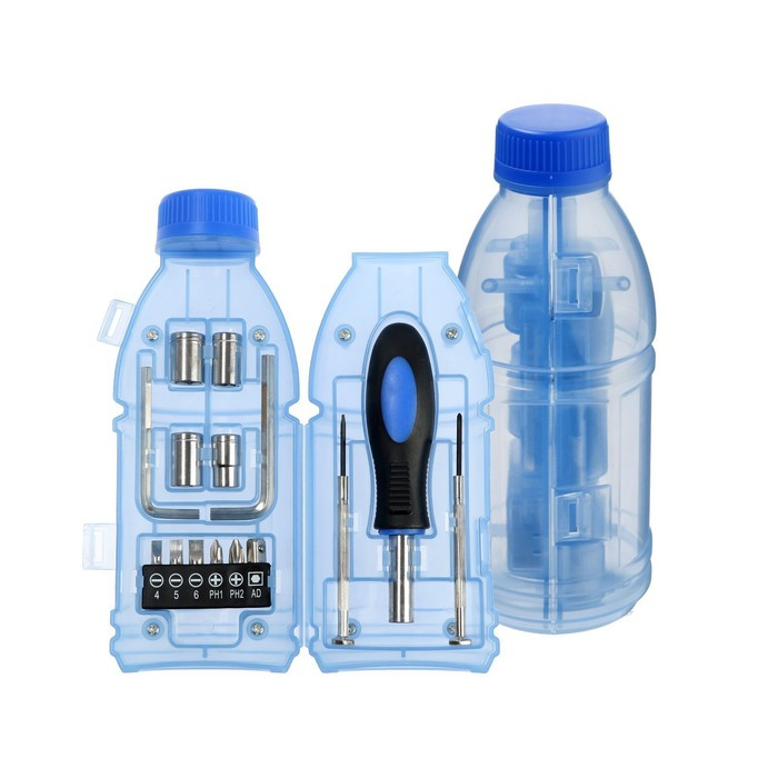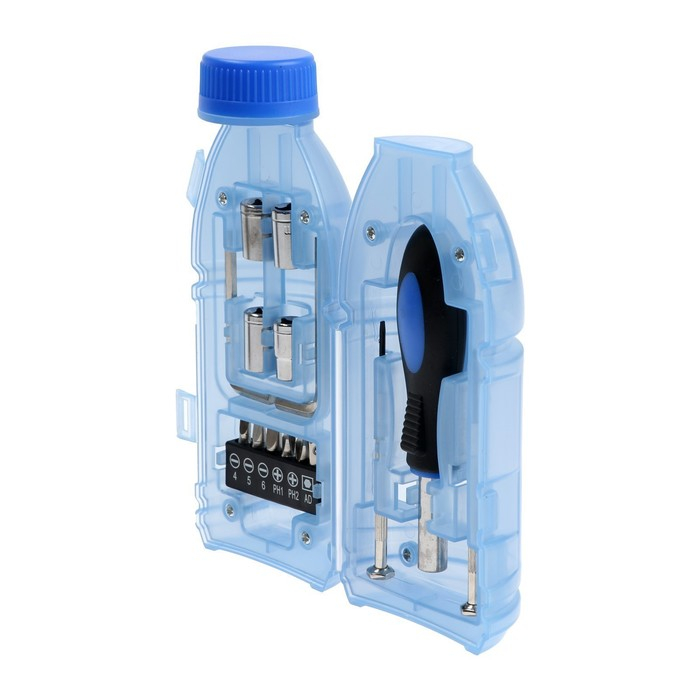 Набор инструментов ТУНДРА, подарочный пластиковый кейс "Бутылка", 15 предметов