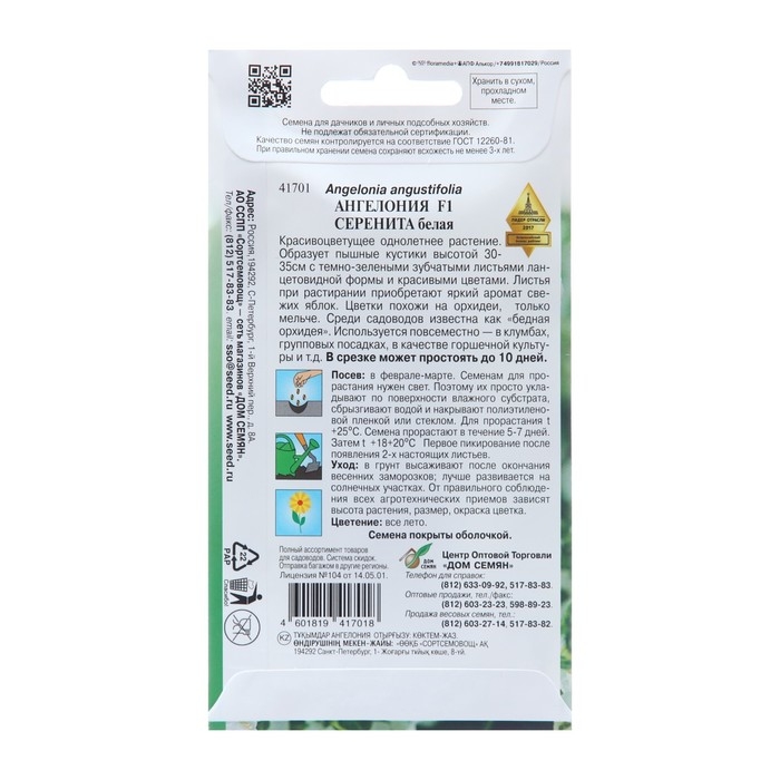 Семена цветов Ангелония "Серенита F1 белая", 3 шт