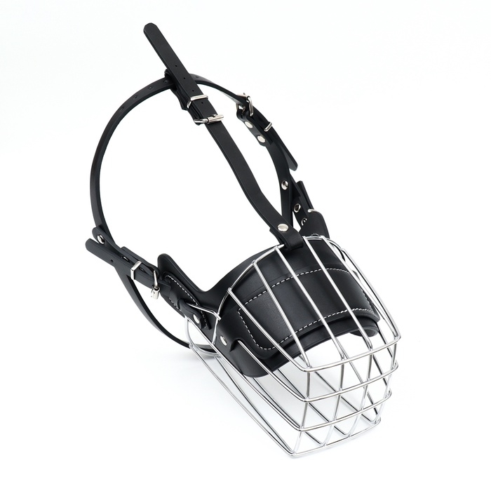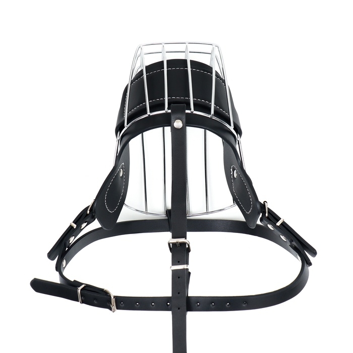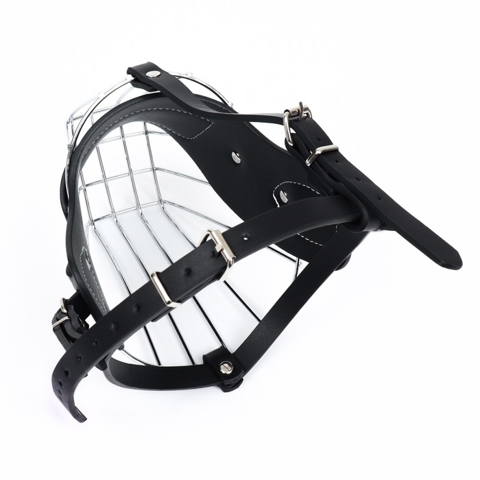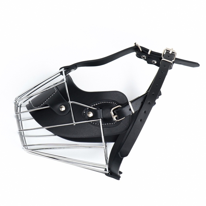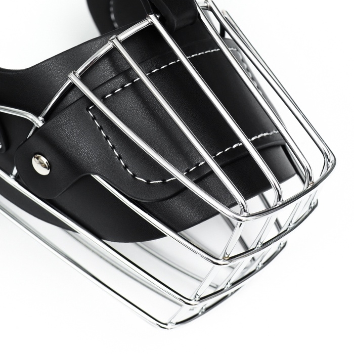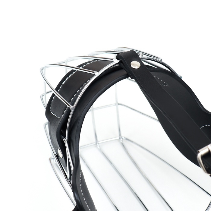 Намордник металлический №4 с трехсторонним ремешком, прессованная кожа, чёрный