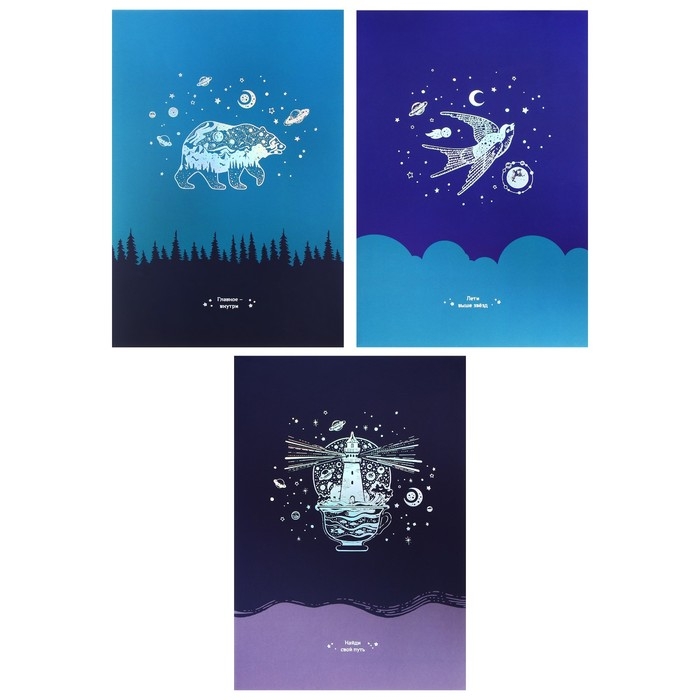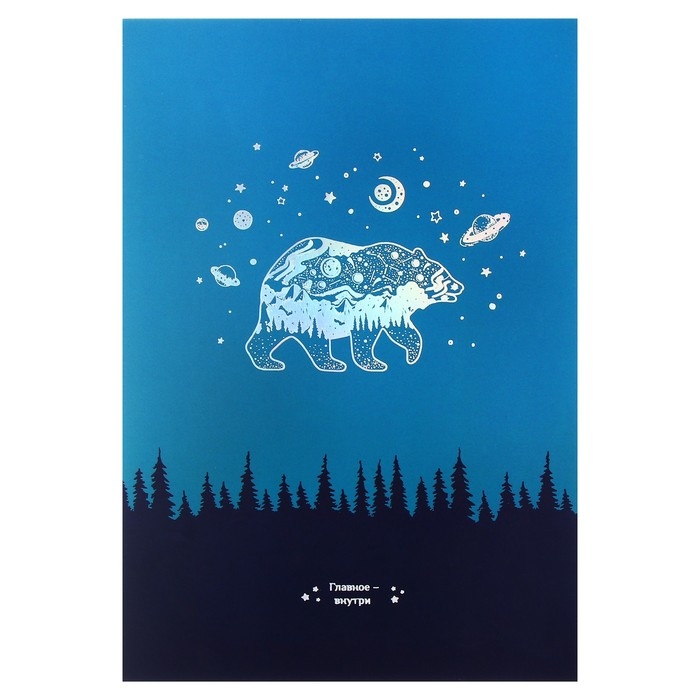 Тетрадь А4, 96 листов в клетку на скрепке "Немного волшебства", обложка мелованный картон, ламинация SoftTouch, тиснение голографической фольгой, МИКС