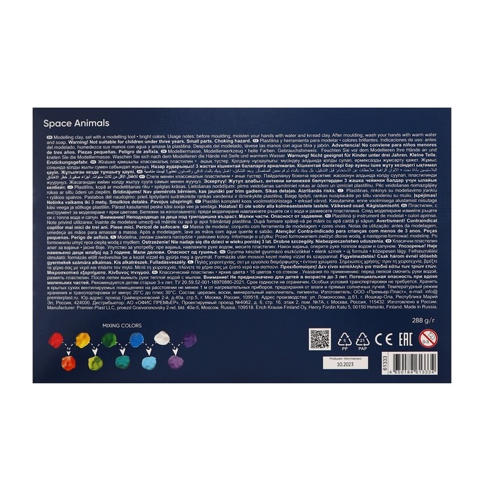 Палитра содержит яркие сочные цвета, которые отлично смешиваются между собой, создавая новые оттенки. Удлиненная форма бруска позволяет легко отделить необходимое количество пластилина для поделки. Каждый брусок имеет индивидуальную упаковку «flow-pack», которая надежно сохраняет товарный вид и пластичные свойства продукта. Обновленная эргономичная коробка-пенал с клапанами и поддон без коррекса удобна в использовании. В комплекте для декорирования и моделирования прилагается стек.