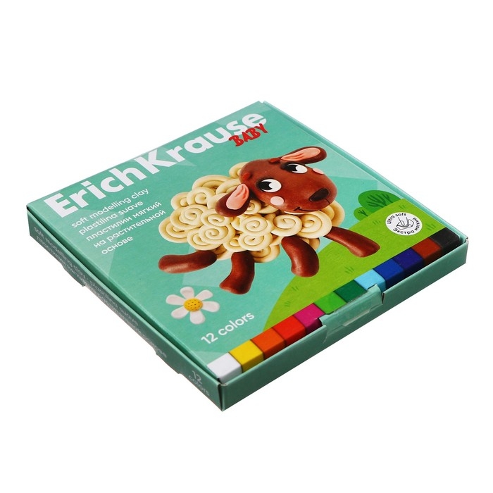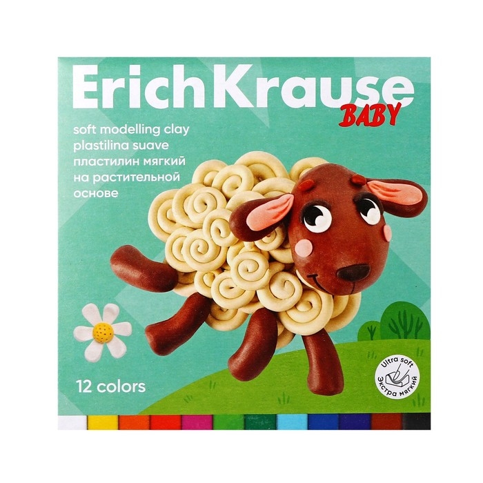Пластилин мягкий 12 цветов, 240 г, ErichKrause "Baby", со стеком, на растительно основе, с Алоэ Вера , европодвес