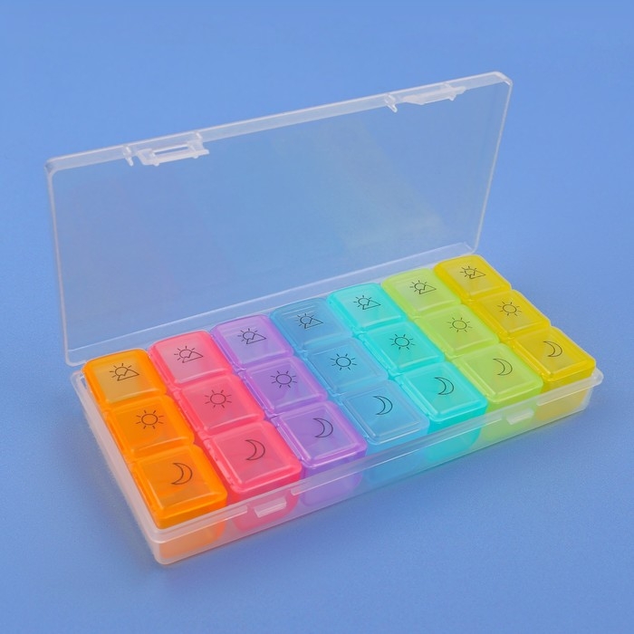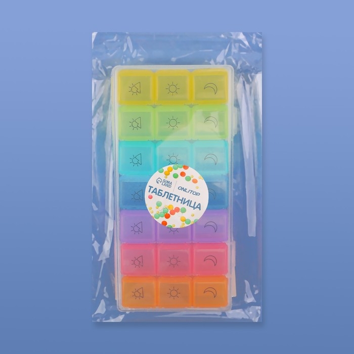 Таблетница - органайзер «Неделька», съёмные ячейки, утро/день/вечер, 17,4 × 8,2 × 2,5 см, 7 контейнеров по 3 секции, разноцветная