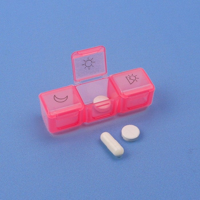 Таблетница разделена на секции, в каждую из которых Вы сможете поместить нужный набор препаратов. Распределите их по дням и возьмите с собой, а пластиковый корпус позаботится о сохранности таблеток.