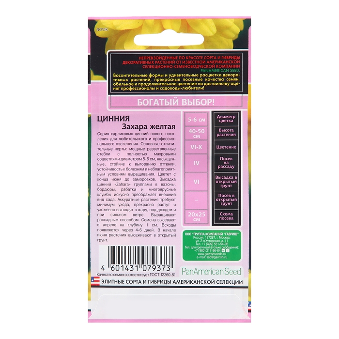 Семена Цинния "Захара", ц/п, желтая, 5 шт.