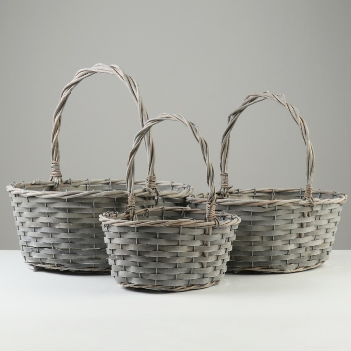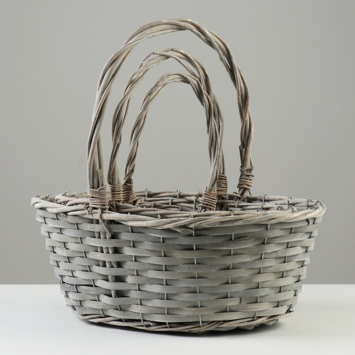 Набор корзин плетеных, 39х30х15х37 см, 33х25х13,5х32 см, 27х20х12х27 см, 3 шт, серые, ива