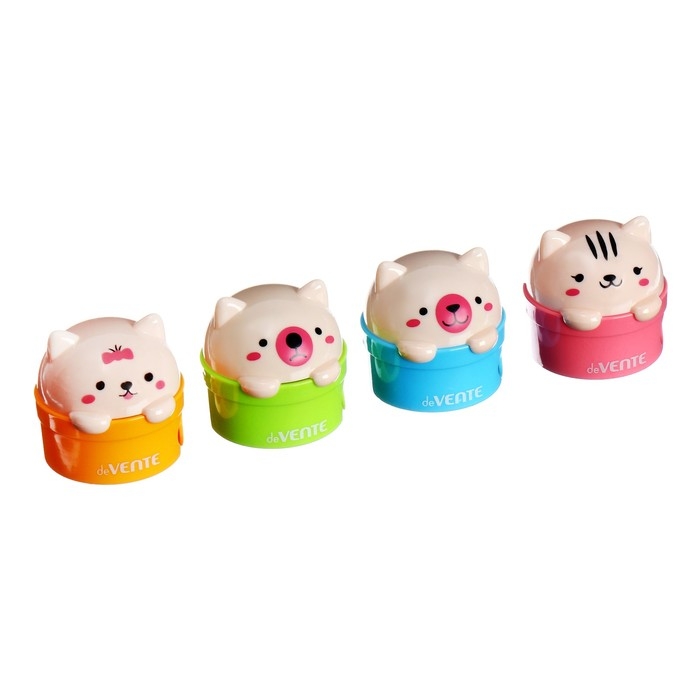 Точилка для карандашей "deVENTE. Kitties" 2 отверстия разных диаметров , с контейнером, пластмассовая в форме котенка, в пластиковой тубе, ассорти.