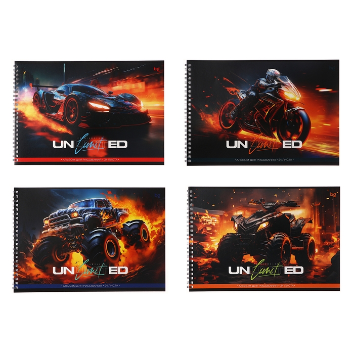 Альбом для рисования А4, 24 листа на гребне Unlimited, обложка картон, блок офсет 100 г/м2, МИКС