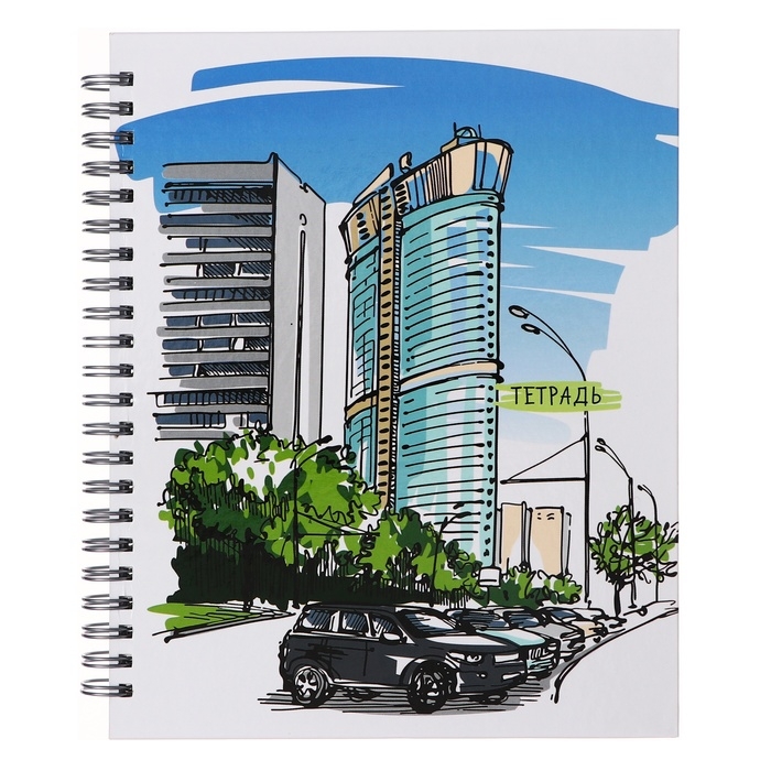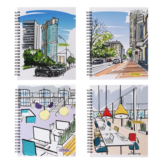 Тетрадь 96 листов в клетку на гребне "Офис", твёрдая обложка, глянцевая ламинация, МИКС