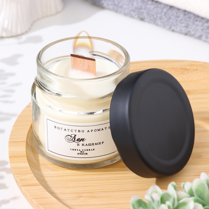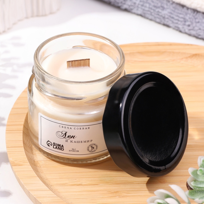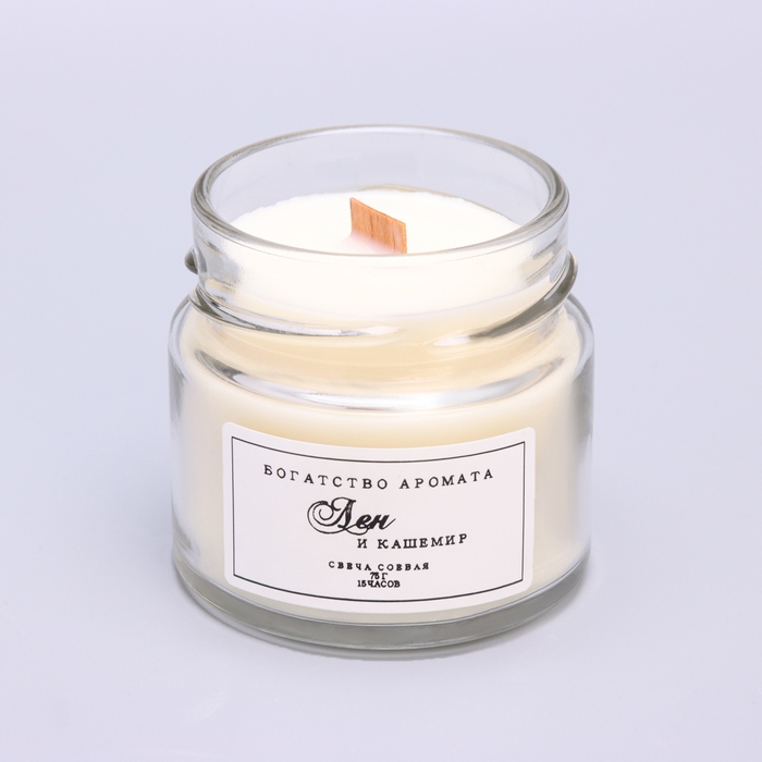 Свеча ароматическая из соевого воска в банке, 75 г, лен и кашемир